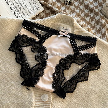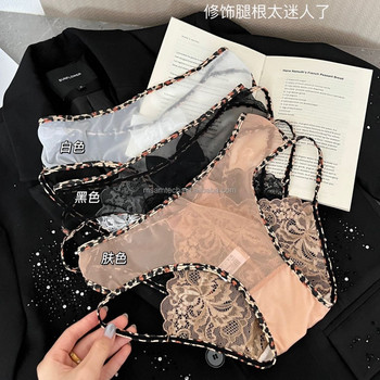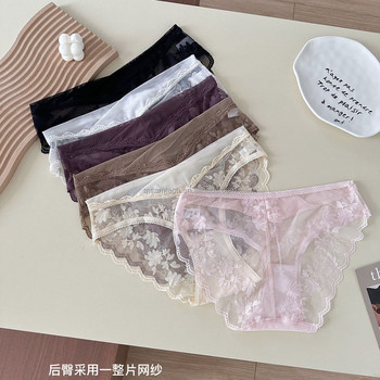 Textura satinada de gama alta de estilo francés ~ Ropa interior sin costuras de encaje con pantalones triangulares de cintura baja de tela de red