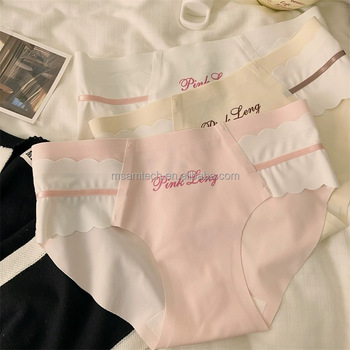 Ropa interior de seda sin costuras-Estilo simple de tiro medio fino con diseño de entrepierna de algodón de una pieza con tacto desnudo-Pantalones Tanga